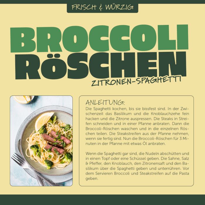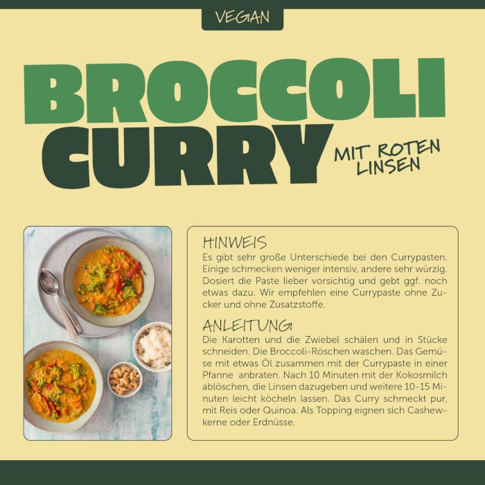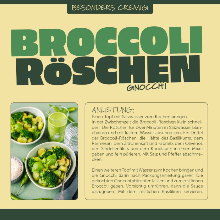 - Nachhaltig: Vermeidung von Lebensmittelverschwendung, da auch kleinere Broccoli-Köpfe und solche, die einfach etwas anders aussehen, verwertet werden